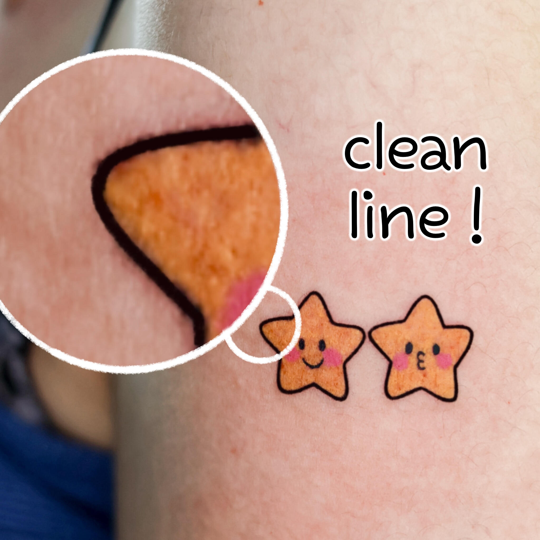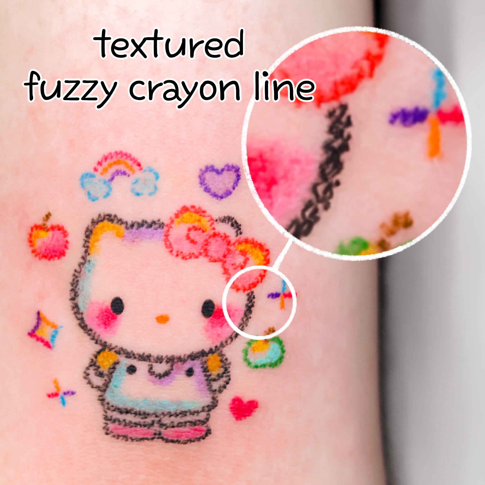 Crayon tattoos are done with the same professional tattoo process.The ink sits in the same layer of skin.Healing and aftercare are the same as regular tattoos.Only the visual style and line expression are different.